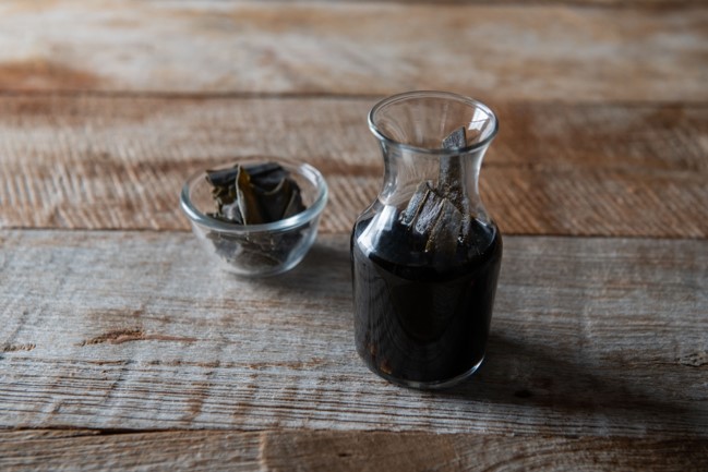 濃口醤油に昆布を数日漬け込んだ旨味たっぷりの特製醤油。