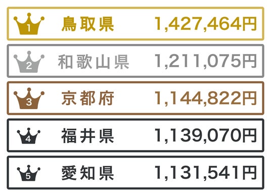 1位 鳥取県(一人あたりの体験金額 1,427,464円)