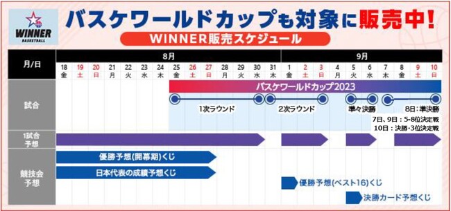 バスケットボールワールドカップを対象とした「WINNER」の販売予定