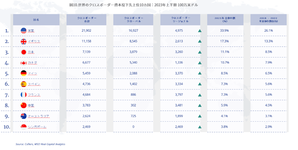 2023年上半期に218億4,000万米ドルに相当するクロスボーダー資本投資を行ったシンガポールは、現在、投資総額の約4分の1を占め、3位のカナダに対して3倍の支出国となっています。