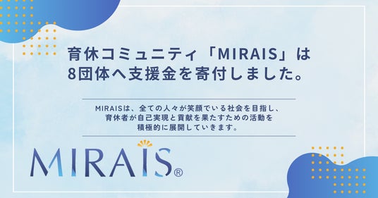 育休コミュニティ「MIRAIS」は8団体へ支援金を寄付しました。