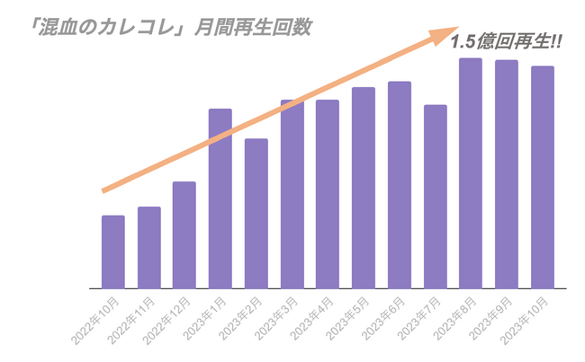 SNSアニメ『混血のカレコレ』は月間動画再生回数ランキング【ノンバーバル除く】にTOP10入りするなど※小中学生のユーザーをメインに動画再生回数を伸ばしています。また、直近の1年では月間再生回数が約3倍になり、2019年のチャンネルスタートから順調に成長しています。