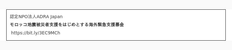 今回、モロッコ史上最悪の甚大な被害が起きてしまったことに衝撃を受けながらも、アドラは地元の方たちと共に、被災された方々に寄り添い、必要とされる支援を届けるため、モロッコ地震被災者支援をはじめとする海外緊急支援の募金特設サイトを開設しました。