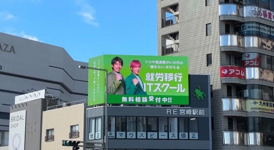 メンタルヘルスラボ株式会社(本社:東京都港区、代表取締役:古徳一暁)は、2025年1月1日(火)より3月31日(月)までの期間、宮崎県宮崎市にある宮崎駅前大型ビジョンにて、就労移行ITスクール公式アンバサダーのEXITが就労移行ITスクール宮崎のサービス紹介をするCM動画の放映を開始いたしました。
