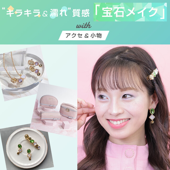 ”キラキラ&濡れ”質感がポイントの「宝石メイク」に合わせることで、さらにメイクが引き立つアクセサリーと小物も登場。新生活にぴったりな華やかで目を惹くデザインのアクセサリーや小物でトレンド感UP!