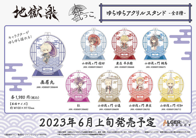 株式会社アルジャーノンプロダクト(本社:東京都台東区、代表:高山 聡士)は、TVアニメ「地獄楽」の新商品グッズを、全国のグッズ・ホビー取扱ショップや、量販店および主要オンラインショップ等にて予約販売を開始いたします。