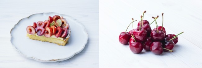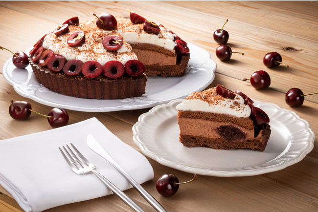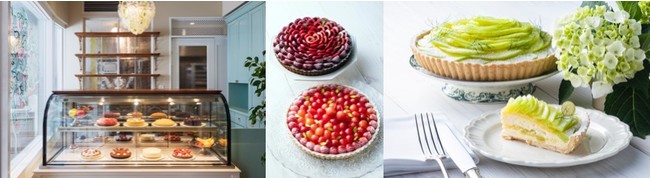 初夏の昼下がり、冷えたシャンパンや白ワインにお酒の効いたチェリーやクリームの「フォレノワール」を楽しんだり、目に眩しいみずみずしいフルーツ満載のメロン、アメリカンチェリー、国産さくらんぼのタルトを温かい飲み物と一緒に味わったりと、タルトをさまざまなシーンでご堪能ください。