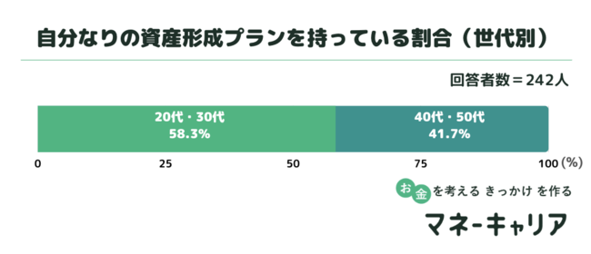 そして「自分なりの資産形成プランを持っている」と回答した人の中でも年代差があり、「40代・50代」に比べ「20代・30代」が約6割(58.3%)を占める結果となりました。