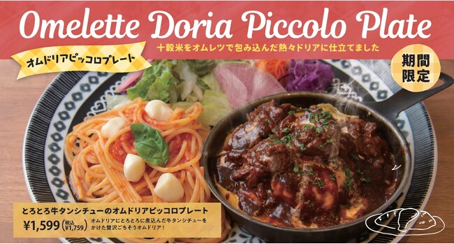 株式会社ヴィア・ホールディングスの子会社、「パステル」などのレストラン業態を展開している株式会社フードリーム(東京都新宿区 代表:関川 周平)は、『パステル』『パステルイタリアーナ』など計32店舗にて、彩り鮮やかな4つのお料理が、ワンプレートで楽しめるピッコロプレートの新シリーズ「オムドリアピッコロプレート」を、1月12日(木)より期間限定で販売します。