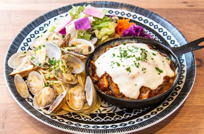 子供から大人まで大好きなオムライスとドリアを、一度に味わえる「オムドリア」。そこに、さらにお好みのソースをかけて贅沢にアレンジ。あれもこれも食べたいという女性のニーズにあわせて、一品一品が程よいボリュームのピッコロプレートに仕上げました。ちょっとカロリーが気になるって方も、ごはんは十穀米を使用しているので、心ゆくまで楽しめます!