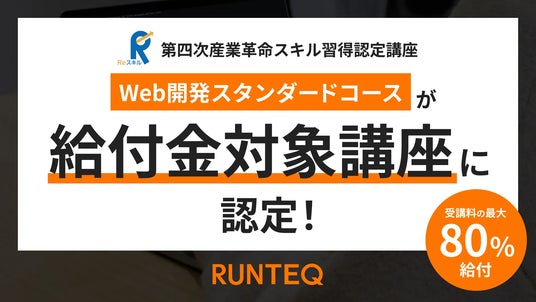 RUNTEQの『Web開発スタンダードコース』は、専門実践教育訓練給付制度の対象講座に認定されています
