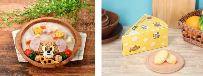 「トムとジェリー」の世界に浸れる「TOM and JERRY DINER」では、トムとジェリーの仲間たちが繰り広げるドタバタ楽しいワンシーンをイメージした、おなかも心もハッピーになれるメニューやグッズが多数登場。大好きなチーズに囲まれて嬉しそうなジェリーをイメージした”「チーズに愛をこめて」腹ペコプレート”、あわてんぼうのジェリーがケーキに飛び込んだ様子を表現したチーズケーキなど、チーズテイストのメニューをご用意!