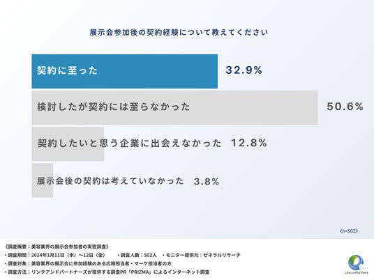 ・展示会参加後の契約経験では、対象者の3割以上が「契約に至った」と回答。