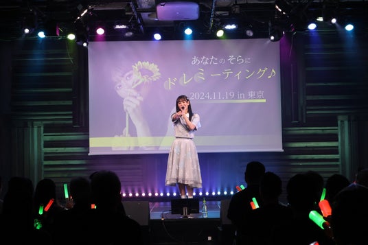 信濃宙花の初となるファンクラブイベント「あなたのそらにドレミーティング♪2024.11.19 in 東京」が開催されました。水色の衣装に身を包んでステージに登場し、感動のあまり涙ぐむ場面もあり、会場からは温かい声援が飛び交いました。イベントはファンの皆さんとの乾杯の音頭でスタート。その後、最初の企画であるファンが直接撮影を楽しめる「写真撮影タイム(カメコタイム)」が行われました。