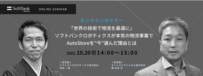 ソフトバンクロボティクス株式会社(本社:東京都港区、代表取締役社長 兼 CEO:冨澤 文秀)は、2022年10月20日(木)、物流事業者さまを対象としたオンラインセミナーを開催します。