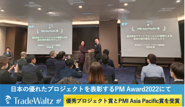 貿易情報連携プラットフォーム(以下:貿易PF)「TradeWaltz」を運営する株式会社トレードワルツ(代表取締役社長 小島裕久、以下:トレードワルツ)は、日本の優れたプロジェクトを表彰するPM Award 2022にて、優秀プロジェクト賞ならびにPMI Asia Pacific賞を受賞したことをご報告します。