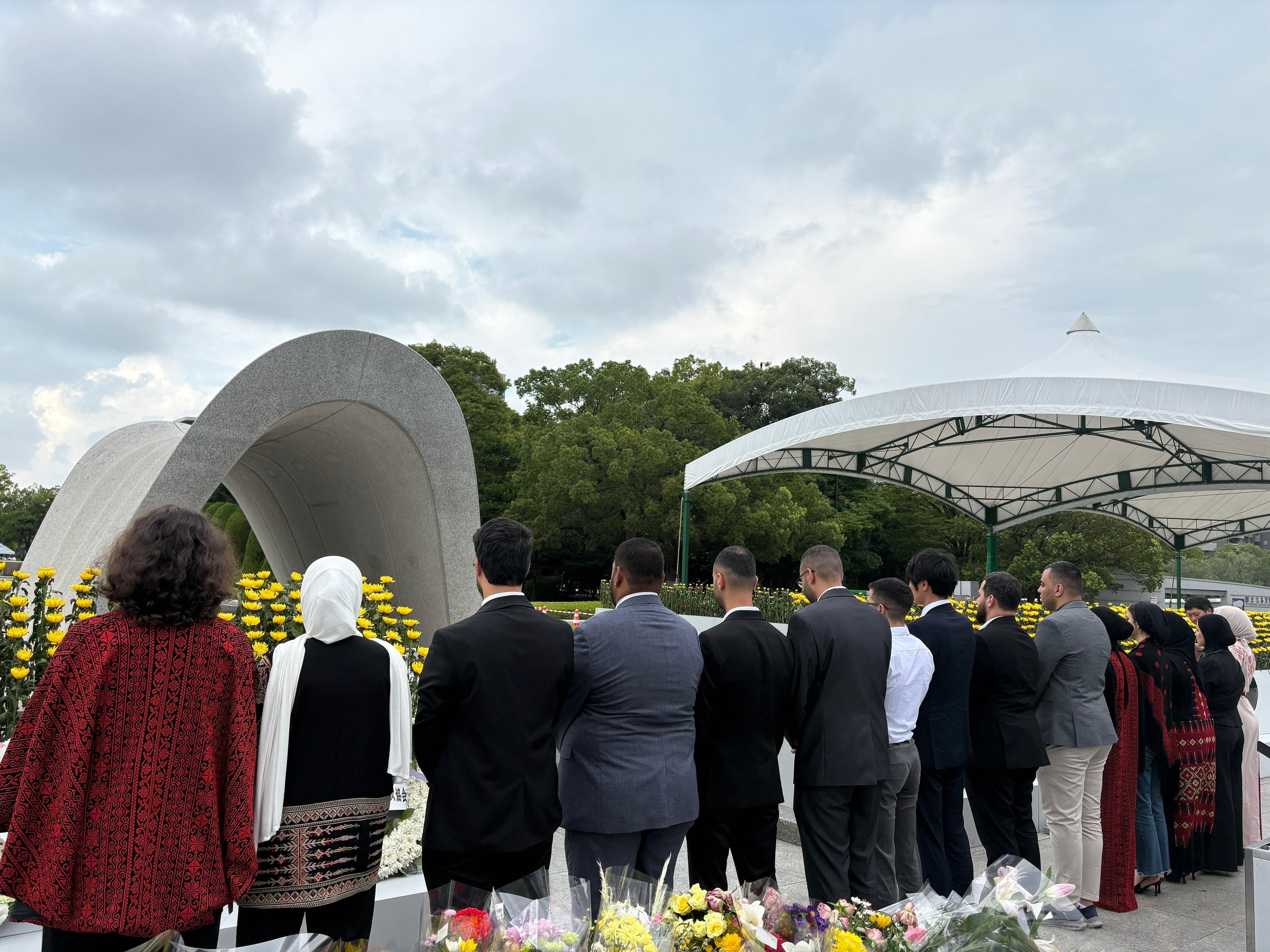 日本での対話会合中に訪問した広島平和記念公園での献花