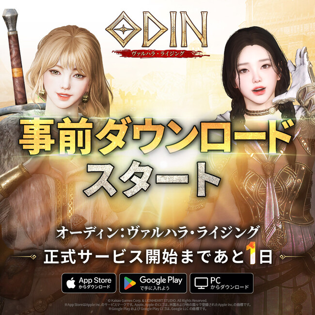 『オーディン:ヴァルハラ・ライジング』は6月14日(水)から事前ダウンロードを開始しており、6月15日(木) 11:00より正式サービスを開始する予定になっています。また、同日よりオダギリジョーさんを起用したTVCMの放送が開始する予定になっています。