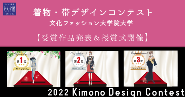 リユース着物の買取・販売業の「たんす屋」と「文化ファッション大学院大学」とのコラボ企画である、「リユース着物や帯を活かしてリメイクするデザインコンテスト」について、厳正なる評価の結果、5作品の受賞が決定いたしました。