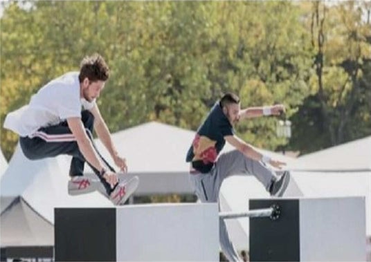 スピードスタートからゴールまでに設置された障害物を超え、タイムを競う。スピード感とダイナミックさ、常人離れした動きに加え、タイムアタック特有の手に汗握る真剣勝負が特徴。