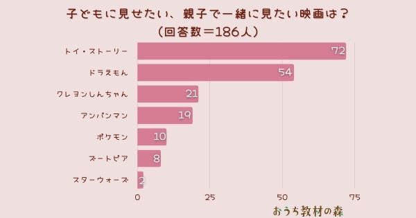 「子どもに見せたい、親子で一緒に見たい映画は?」とアンケート調査した結果、1位は『トイ・ストーリー』でした。