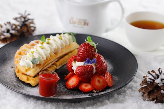 四条店限定『あまおう苺のワッフル LIPTON クオリティダージリン付き』