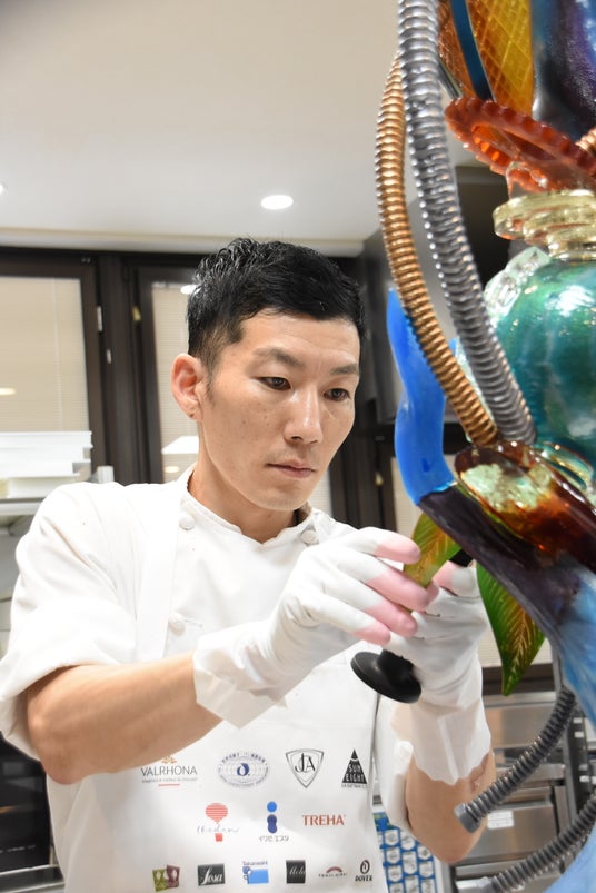 的場は、2023年3月に行われた「第19回 クープ・デュ・モンド・ドゥ・ラ・パティスリー」日本国内予選A部門(シェア・デザートとアメ細工のピエスモンテ)にて優勝し、日本代表に選出されました。