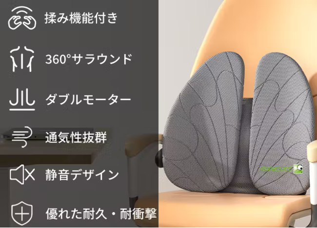 ・新発想!程よい振動で腰の負担を軽減できる背もたれ!長時間運転とデスクワークの最高なお供!