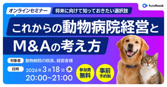 株式会社チェンジホールディングス(本社: 東京都港区、代表取締役兼執行役員社長: 福留 大士、以下「チェンジ HD 」)の子会社である、株式会社 fundbook (本社: 東京都港区、代表取締役: 渡邊和久、以下「 fundbook 」)は、株式会社アスコ(本社:愛知県豊橋市、代表取締役: 相原夏実)との共催で、動物病院の院長・経営者向け無料オンラインセミナーを 2026 年 3 月 18 日(水)に開催いたします。