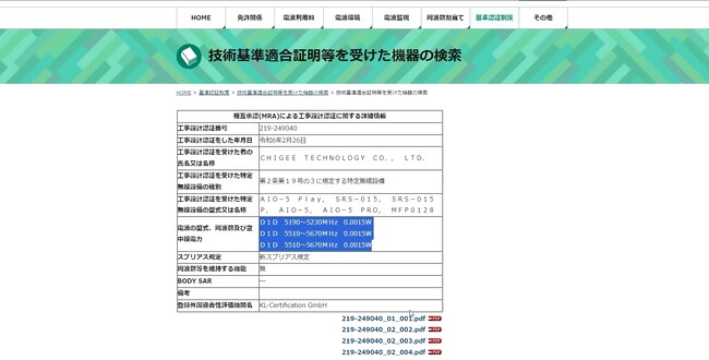 AKEEYOの「AIO-5Play」と「AIO-5Lite」は、DFS技術基準適合証明番号を取得済みです。