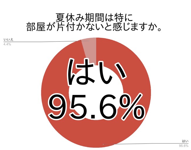 アンケートでは、夏休み期間は特に部屋が片付かないと感じるか尋ねてみました。