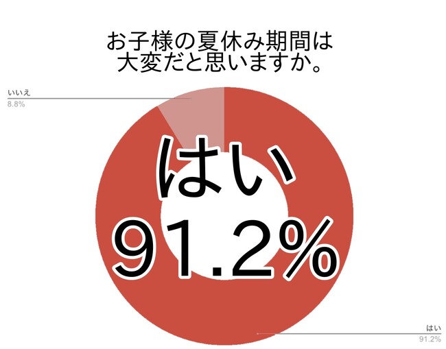 関東地域では子供の夏休み期間はその家の大人にとって大変と答えた方は9割超(91.2%)でした。