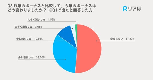 Q3. 昨年のボーナスと比較して、今年のボーナスはどう変わりましたか?