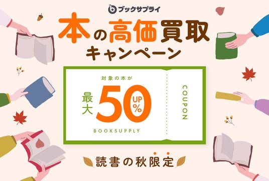 株式会社ブックサプライ(本社:大阪府吹田市、代表取締役:藪田真吾)は、2024年10月1日(火)から10月31日(木)までの期間限定で、買取金額が通常より50%UPする特別な機会を提供いたします。読書の秋にぴったりなこのキャンペーンでは、対象の本を通常よりお得に売却できるため、手持ちの本を整理する絶好のタイミングです。