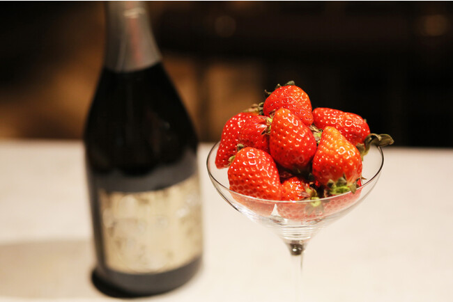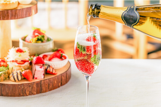 季節ごとに登場するスペシャルスイーツに、KIHARU初の春のアフタヌーンティーが登場します。最初の一品には、フレッシュな苺をシャンパングラスでご提供。お好みでスパークリングワインを注ぎ(料金別途追加)、黄金の泡が真っ赤な果実にまとう美しい一品を楽しむこともできます。