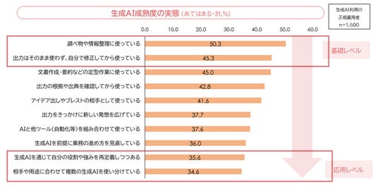 生成AIの活用は基礎的な利用に偏り、発展的活用は途上