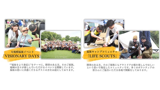 販売されるチャリティグッズの収益は、障害のある方やそのご家族が自然体験を通じて豊かな時間を過ごす『LIFE SCOUTS』活動と大規模福祉イベント『VISIONARY DAYS』にて活用されます。購入されたチャリティバッグの収益がイベント運営費の補助につながるなど、「自分が選んだ商品が、誰かの笑顔につながっている」ことを実感していただける内容です。