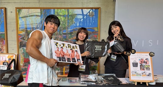 フィットネス実業団「7SEAS」のマッチョ介護士によるチャリティ販売の様子