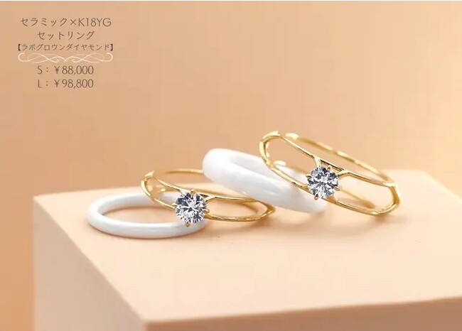 “高級素材のイメージ”白い素材【セラミック】が映える【K18YG】のセットリング