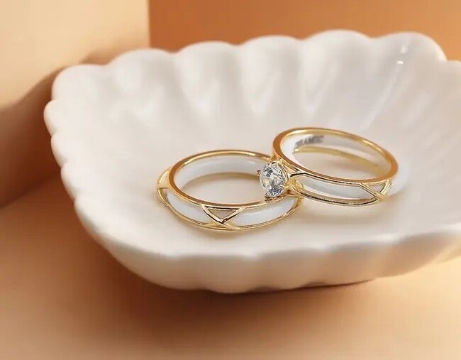 “高級素材”のイメージがある白い素材【セラミック】と【金】が生み出す美しい対比の特別なリング!