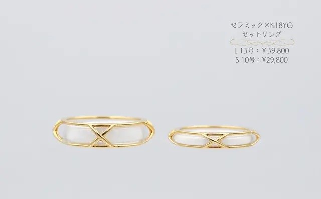 そこで、今回はセラミックと「貴重な素材」である【K18イエローゴールド】を使ったオリジナルのセットリングを作ってみました。