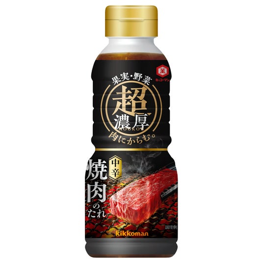 「キッコーマン超焼肉のたれ」シリーズは、野菜のうまみと果物の甘みが味わえる、具材たっぷりの濃厚な焼肉のたれです。つけかけでもからめて焼いてもおいしく召しあがれます。たまねぎ・にんにく・生姜・りんご・レモンなどを総重量 の半分以上使用しています。甘口 ・中辛のほか、超おろしのたれ、超生姜焼のたれの 4 種類のラインアップです。