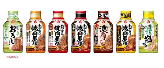 「わが家は焼肉屋さん」シリーズは、ご家庭で焼肉屋さんの味を楽しむことができる本格的な焼肉のたれです。定番の甘口・中辛をはじめ、新発売のすりたておろししょうゆなどお好みに合わせてお選びいただけるさまざまな味種を揃え、7種類のラインアップです。