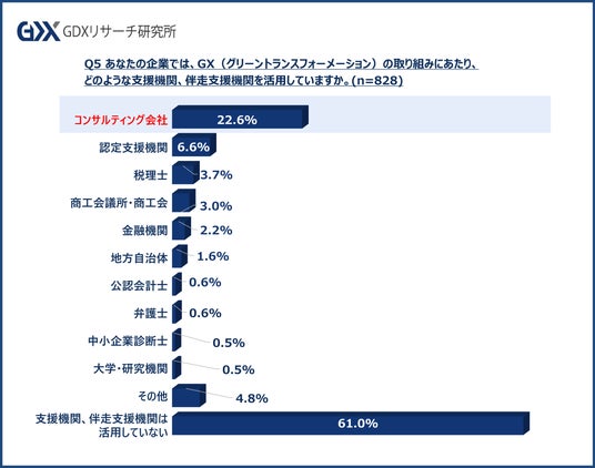 Q4でGXの取り組みへの効果・浸透度を感じている企業が半数以下と判明しましたが、どのようなサポートを受けている企業が多いのでしょうか。
