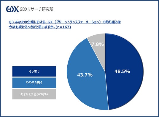 Q3.あなたの企業における、GX(グリーントランスフォーメーション)の取り組みは今後も続けるべきだと思いますか。