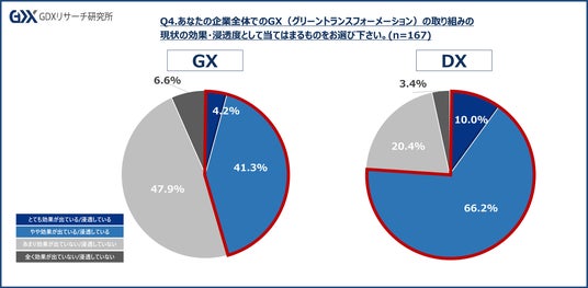 Q4.あなたの企業全体でのGX(グリーントランスフォーメーション)の取り組みの現状の効果・浸透度として当てはまるものをお選び下さい。