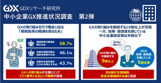 今回は、GXに取り組む理由、取り組みへの効果・浸透度、支援機関・伴走支援機関の必要性について調査いたしました。