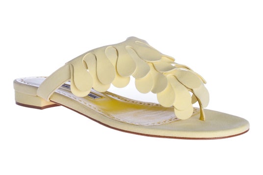 マノロ ブラニクから、南国に咲くプルメリアの花をインスピレーション源にしたシューズコレクションが登場します。プルメリアの優美な花びらのフォルムを映し取ったカスケード状のスエードアクセントは、華やかさとフェミニンなエッセンスを加え、春夏の装いに洗練された輝きをもたらします。まるで陽光が降り注ぐ地中海のリゾートに佇むような、エフォートレスなエレガンスを宿したデザインです。