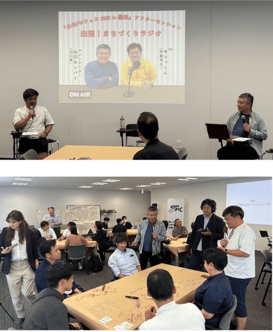 30日のアフターセッションでは、全国のまちや地域活動に関わる方をご紹介するラジオ番組『キトゥくんと山口センパイの まちづくりラジオ』の木藤様・山口様にお越しいただき、墨田区都市整備部浮貝様との対談やワークショップを行いました。