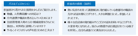 また、登壇者と参加者との双方向コミュニケーションを促進するため、Webサービス「Slido」を用いて参加者からリアルタイムで寄せられた質問や参加者が実務で感じているお悩み等をもとにパネルディスカッションを行いました。会場全体で意見を共有し、理解を深める貴重な機会となりました。